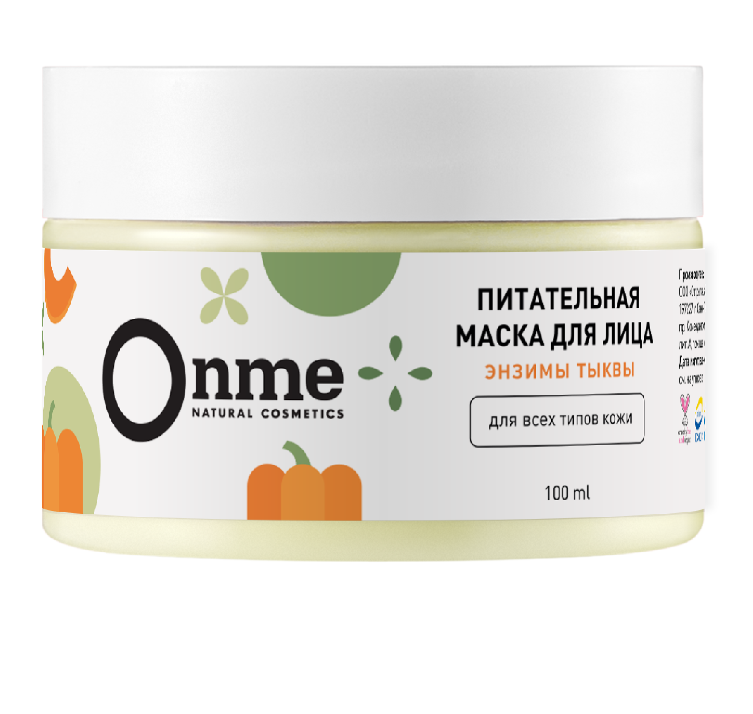 Aqua (вода), Cetearyl Alcohol (цетеариловый спирт), Cucurbita Pepo Seed Oil (тыквенное масло), Glycerin (растительный глицерин), Stearic Acid (стеарин), Glyceryl Stearate (глицерил стеарат), Niacinamide (ниацинамид), Prunus Amygdalus Dulcis Oil (миндальное масло), Lactobacillus/Cucurbita Pepo Fruit Ferment Filtrate (энзимы тыквы), Benzyl Alcohol (бензиловый спирт), Magnolia Officinalis Bark Extract (экстракт магнолии лекарственной), Sodium Hydroxide (гидроксид натрия), Tocopherol (витамин Е), Xanthan Gum (ксантановая камедь).
